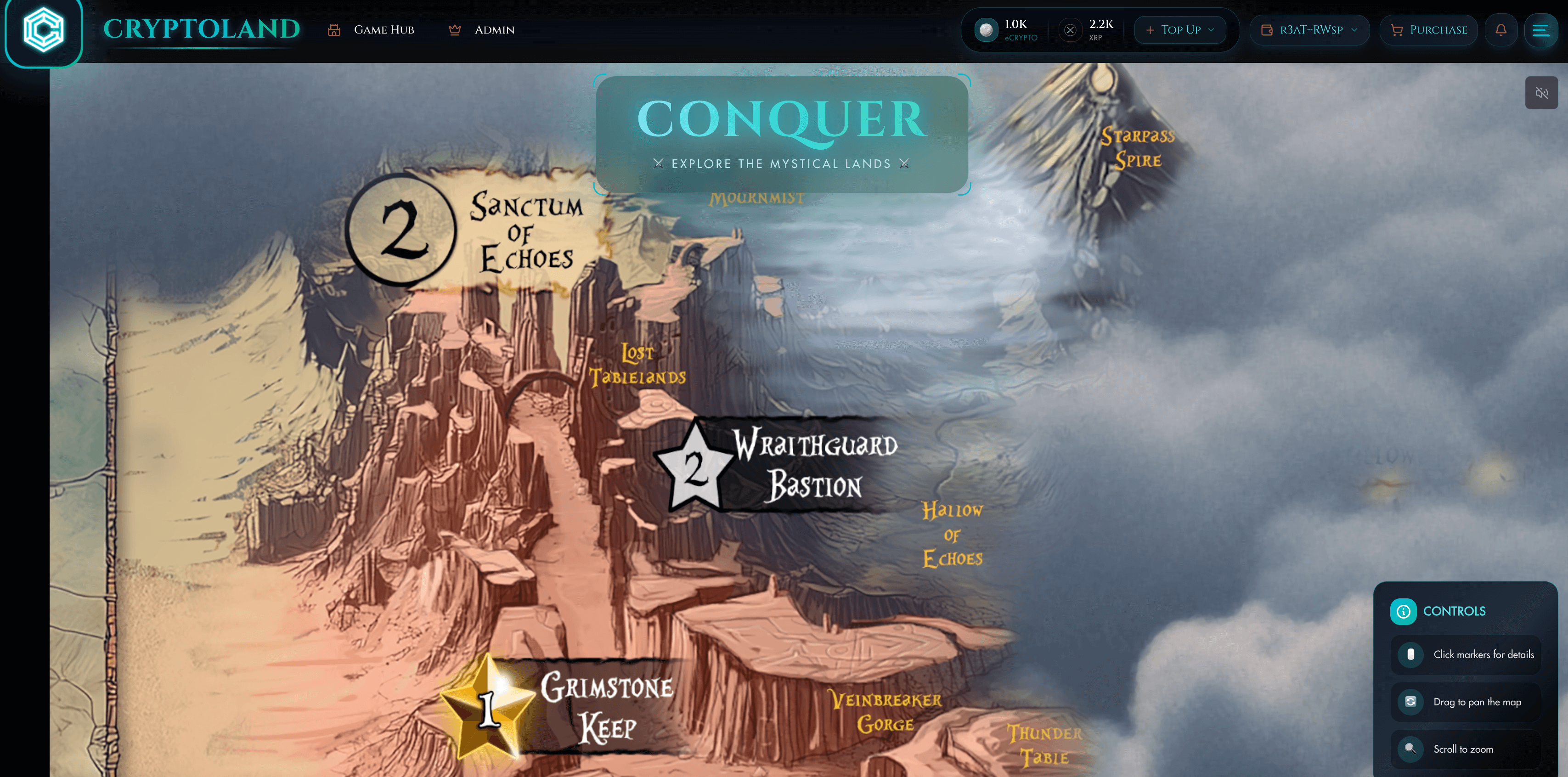 CryptoLand is a play-to-earn strategy game built on the XRP Ledger. Players own Land NFTs that generate daily income on Mount CryCor, deploy Avatar characters (Cryptopians) with unique abilities—Army, Miners, Nobles, Artisans—and build their empire. Land earns 0.3–3.0 CRYPTO daily with true passive income; Avatars can mine, govern, raid, and craft for additional rewards. The game offers near-zero fees and 3–5 second settlements on XRPL.
